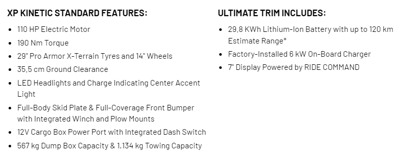 With range up to 128 km, convenient charging from a 120V outlet, and less scheduled maintenance than a similar gas-powered vehicle, RANGER XP Kinetic gives you the power to do more.